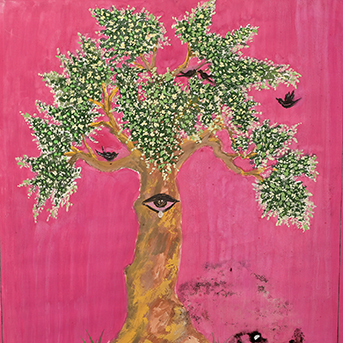 All her paintings are inspired by the ghazals of the legendary Ustad Mehdi Hassan.